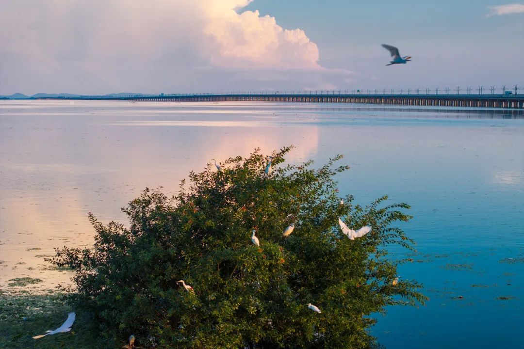 В разгар лета обязательно посетите деревню Чжансю в уезде Хэфэнчжэнь, чтобы полюбоваться незабываемым закатом над озером Шицзю. Знаменитый мостик на фоне золотого света солнца создаёт уникальный силуэт, добавляя романтические оттенки к красоте заката. А в приозерных фермерских домах можно попробовать свежие сезонные блюда из рыбы, чтобы вкус этого летнего уголка озера остался в памяти надолго.
